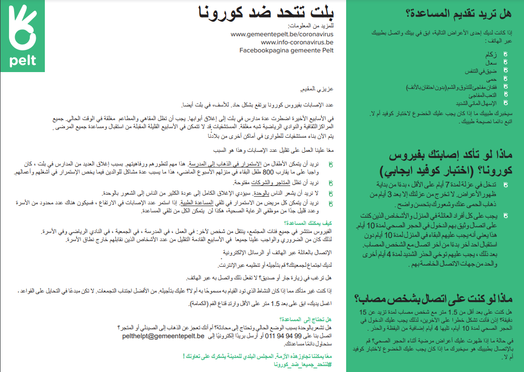 Zoals andere openbare plaatsen zijn ook de moskeeën gesloten. UMIVEL heeft daarom al haar gebedshuizen ter beschikking gesteld als triagepunten. “We vragen onze leden ook ten dienste van de maatschappij te staan, zolang ze ertoe in staat zijn. Help elkaar daar waar nodig”, besluit Chahbi.